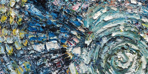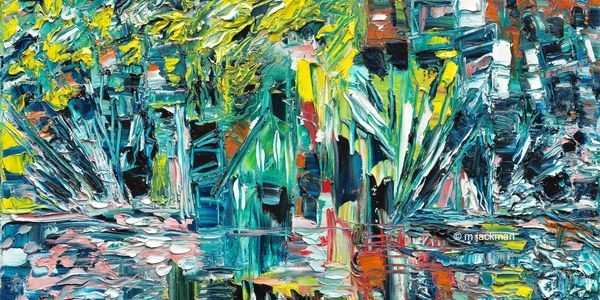 When I start a piece, I always start with acrylic, as I love the clarity of colour that acrylic paint offers, and the freedom of movement, working with paint and brush, as I try to mirror the music of everyday life. Sometimes it stays there, but often it leads me into oil, searching for textural expression. Here I work only with palette knives, and love how it brings a life-like energy to form and movement. I continue to be enveloped and energized by the never-ceasing magic of both mediums.