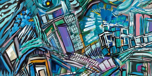 As a singer/songwriter, I have developed a deep respect for the colours of thought - this has impacted on how I 'see'. Within the process and creation of my paintings, I strive to develop this vision of 'tones' in paintings. I work in the mediums of acrylic and oil, capturing colour, light and sound - reflected in urban, cosmic and natural environments. My artistic approach also comes from a graphic sensibility, as I constantly try to express and encompass an integration of movement, pattern, line, form, colour and vibrancy. As I perceive 'meaning' embedded within the wonder of life's mysteries, my commitment to both musical and artistic learning takes me there. In fact, I paint while listening to music and often find that the colour and tone of my paintings differ as a result.